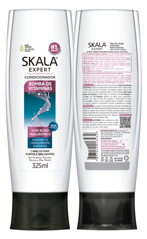 A Linha Bomba de Vitaminas Skala Expert, possui uma fórmula exclusiva com ingredientes ricos em nutrientes poderosos, que auxiliam na saúde dos fios.
