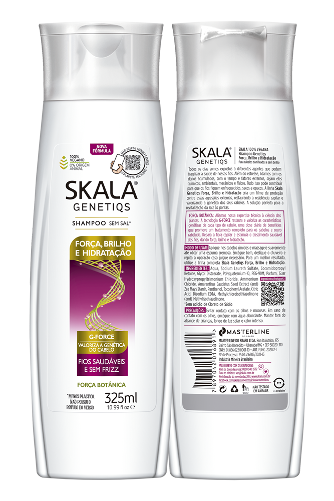 Todos os dias somos expostos a diferentes agentes que podem fragilizar a saúde de nossos fios. Além do estresse, lidamos com os danos acumulados com o tempo e fatores externos, sejam eles químicos, ambientais, mecânicos e físicos. Tudo isso pode contribuir para que os fios fiquem enfraquecidos, secos e opacos. A linha Skala Genetiqs Força, Brilho e Hidratação cria um filme de proteção contra essas agressões externas, restaurando a resistência capilar e valorizando a genética dos seus cabelos. A solução perfeita para a revitalização da raiz às pontas.
